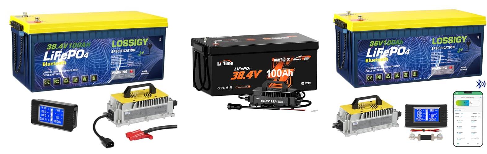 3. LOSSIGY 36V 100AH Golf Cart Lifepo4 Battery with 36 volt 25A Lithium Charger