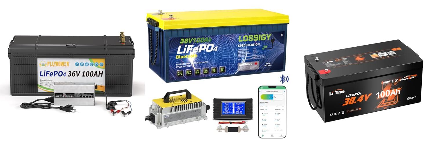 2. LOSSIGY 36V 100AH Golf Cart Lifepo4 Battery with 36 volt 25A Lithium Charger
