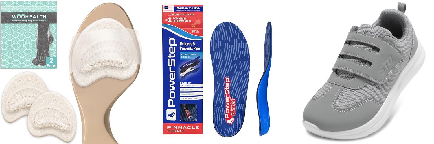A: You need arch support that helps distribute your weight evenly. This prevents too much pressure on the forefoot.
