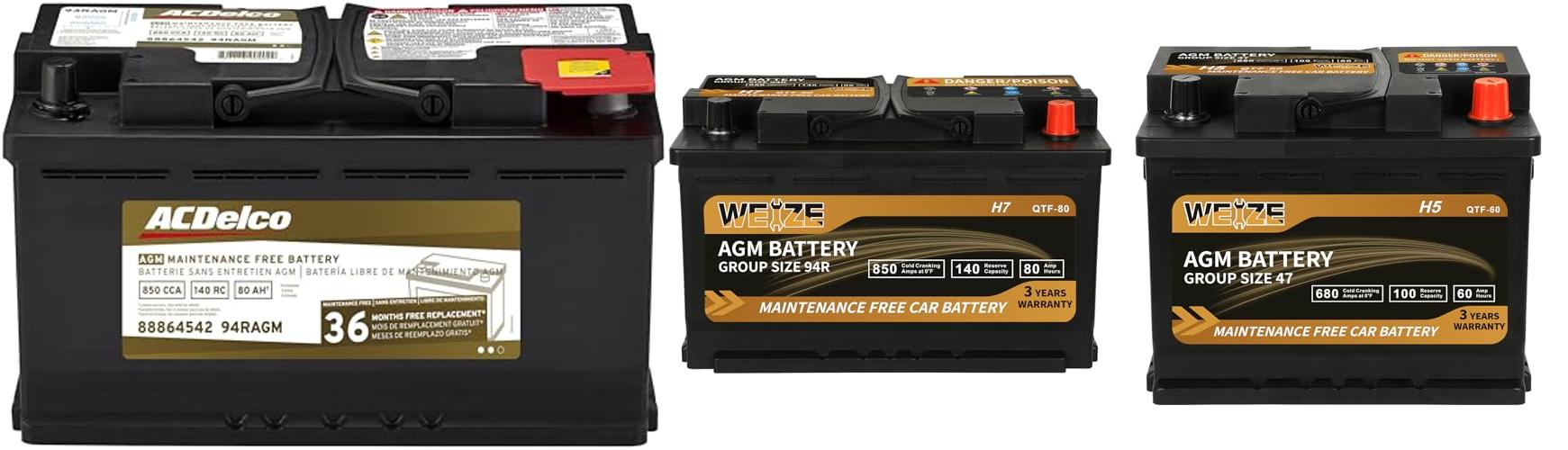 3. Weize Platinum AGM Battery BCI Group 47-12v 60ah H5 Size 47 Automotive Battery