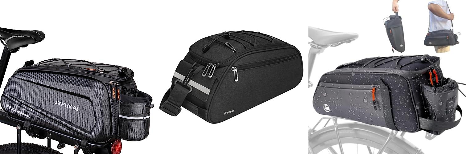 1. JXFUKAL Bike Bags for Bicycle Rear rack – 9.5L/17L/40L Hard Shell Waterproof Bike Ebike Trunk Pannier Saddle Seat Bag Carrier with Reflector