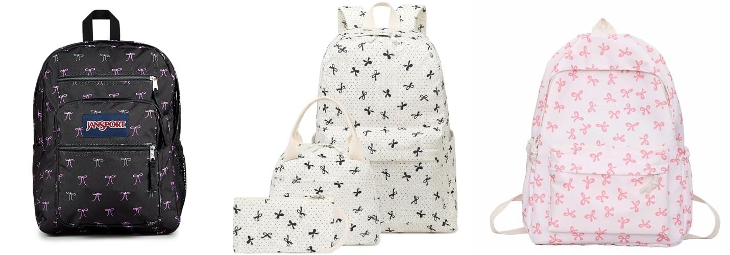 A: Styles vary widely! You can find backpacks with different bow sizes, colors, and placement. There are also different backpack shapes and sizes to choose from.