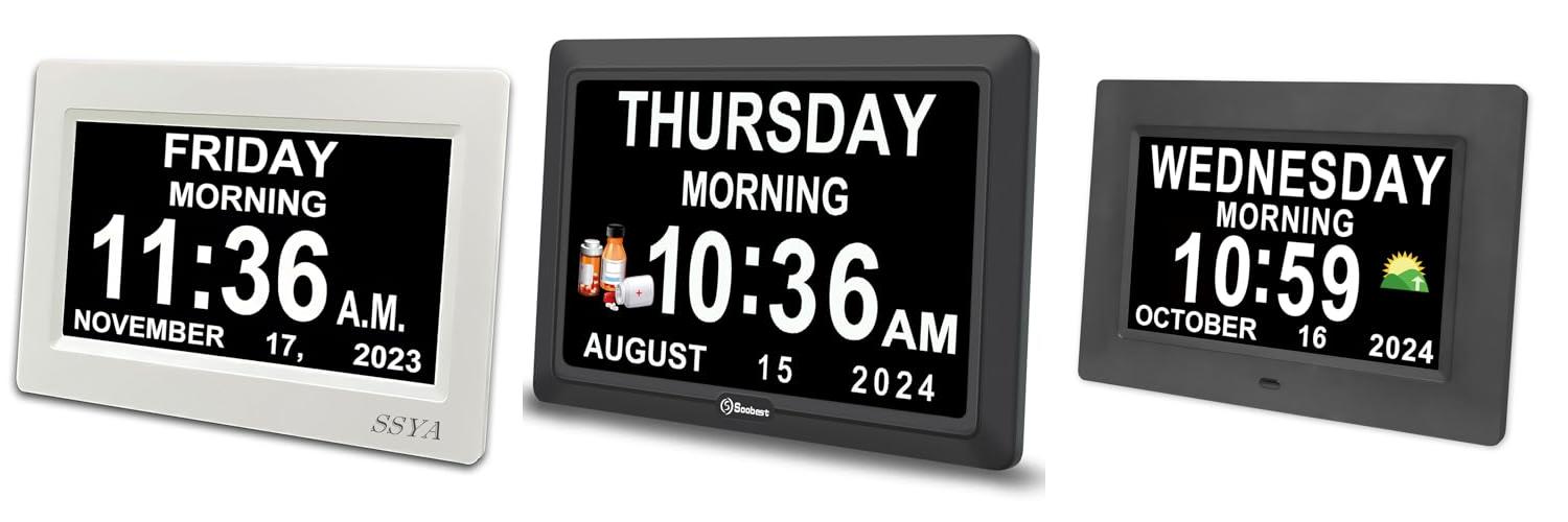 1. SSYA Digital Calendar Alarm Clock – Dementia Clocks for Vision Impaired