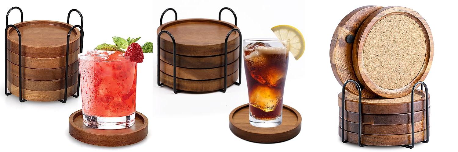 - Wood: Wooden coasters look nice and are durable. They may not be as absorbent as other options. You should seal them to protect them.