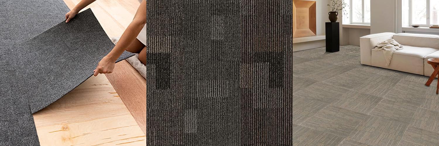 Petgrow Commercial Carpet Tiles, 24" x 24" Squares, 18 Tiles, 72 sq ft, Non-Slip Soft Floor Carpet for Office, Bedroom, Living Room, Kitchen, Garage,Easy DIY Installation with Flexlok Tabs