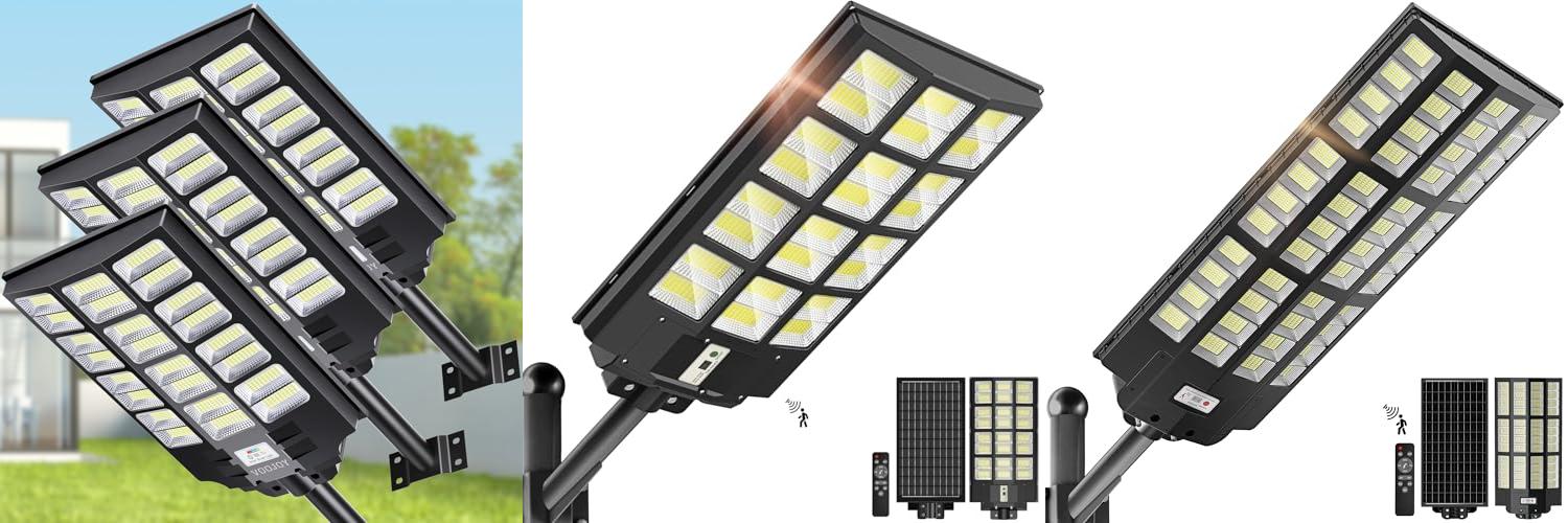 Brighten up your outdoor spaces with the VOOJOY 8000W Solar Street Light! This pack includes three powerful solar lights. They are perfect for yards, parking lots, and streets. These lights use the sun’s energy to provide bright and reliable lighting. They have smart features, like motion sensors and a remote control. You can easily install them and save money on your electricity bill.