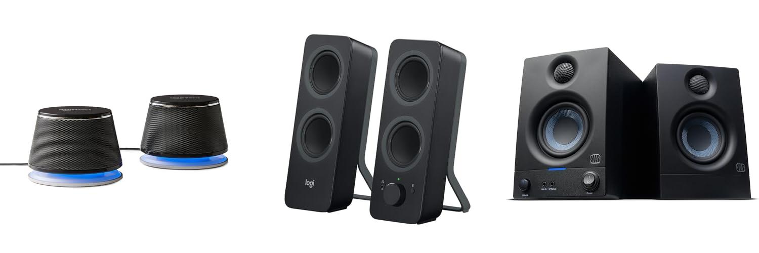 For basic audio enhancement, these Amazon Basics speakers are a solid and affordable choice. They deliver a noticeable improvement over built-in laptop speakers without any complicated setup.