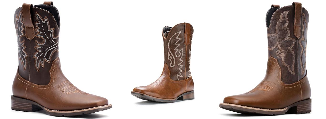 1. Lumeheel Cowboy Boots for Men – Western Square Toe Men’s Brown Boots with Classic Embroidered