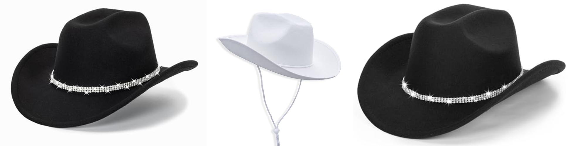 1. Glitter Silver Black Cowboy Hats for Women – Western Sparkly Rhinestone Cowgirl Hat for Ladies