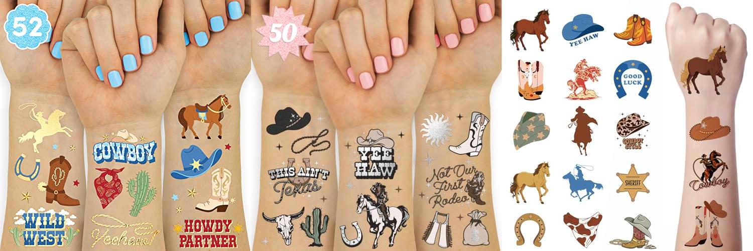 4. 80 PCS Cowboy Temporary Tattoos for Party Supplies