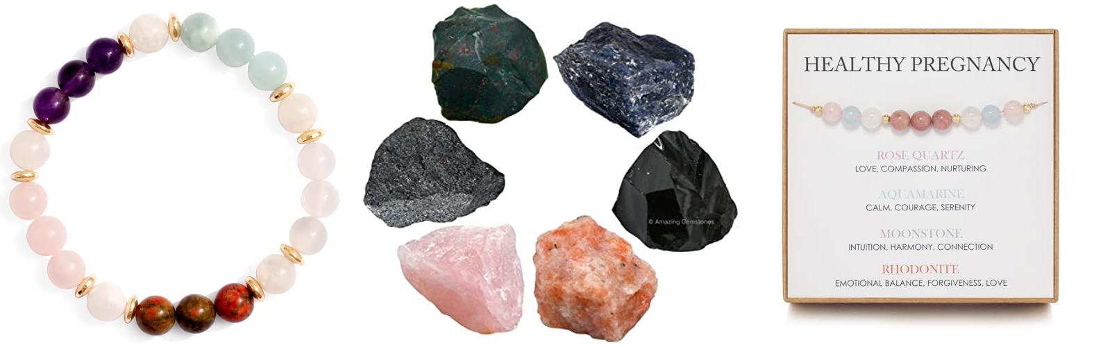 - Healing Power: The bracelet uses rose quartz, rhodonite, and moonstone. Each crystal has properties to support pregnancy and motherhood.