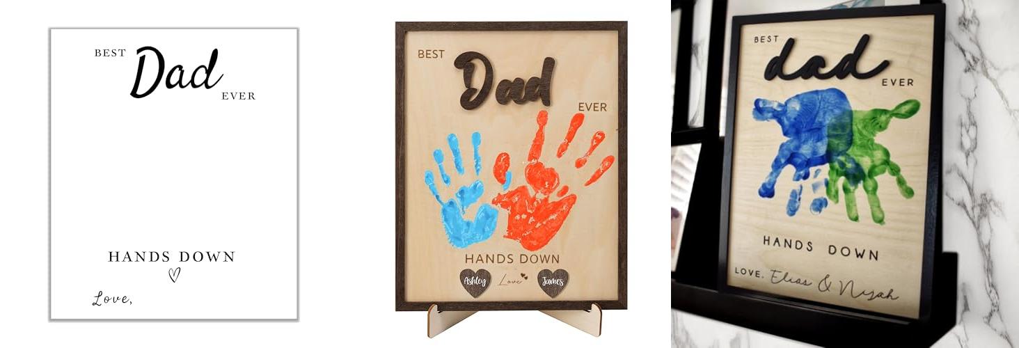 2. NELXI Handprint Father’s Day Gift from Kids – Best Dad Ever Hands Down – Personalized Wood Sign with Name – DIY Dad Craft for Kids – Sentimental Gift for First Time Grandpa