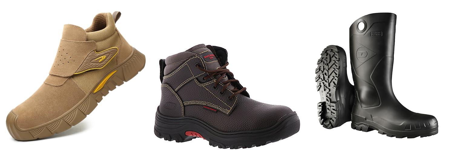 A: Rubber, leather, and neoprene are good materials. Steel toes add extra protection.