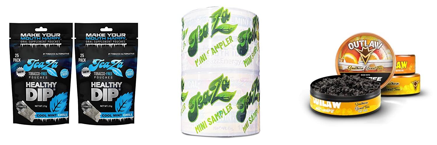 The Teaza Herbal Energy Pouches are a good option for those wanting a tobacco-free dip. If you like the cool mint flavor, you should try it.