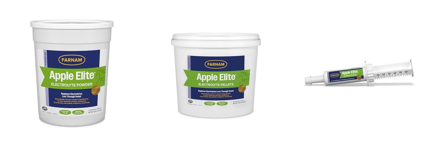 Farnam Apple Elite Electrolyte Supplement is a good choice for horse owners. It is easy to give and helps keep horses healthy and hydrated.