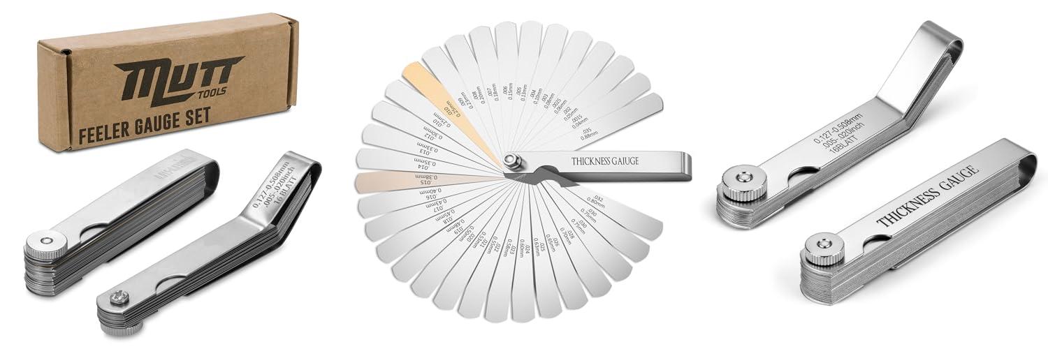 1. Mutt Tools 2pc Feeler Gauge Set – Premium Straight & Angled Feeler Gauges for Valves – Inch and Metric Measurement – Gap Tool for Automotive