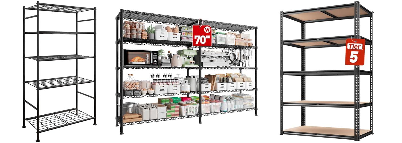 - These shelves work great in many places, like your pantry, kitchen, closet, or garage. They help you use your space better.