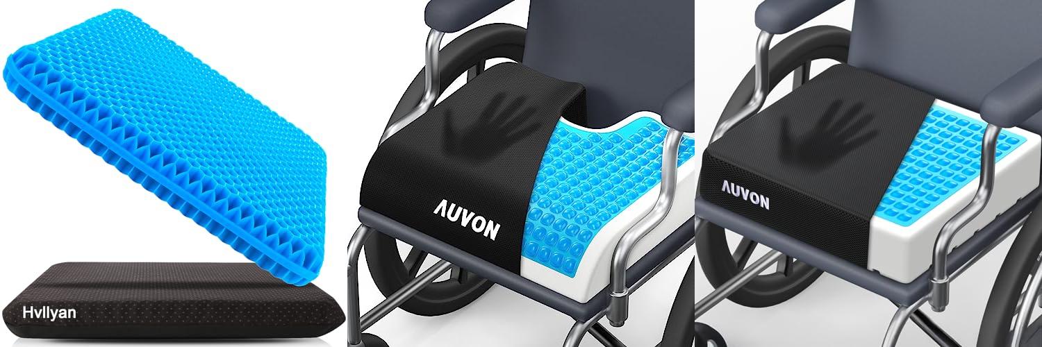 The AUVON Cooling Gel Wheelchair Seat Cushion is designed to make sitting more comfortable. It helps with pain from sciatica, back issues, pressure sores, and ulcers. This chair cushion uses a cooling gel and memory foam. It has a breathable cover and is easy to use. This cushion is made for wheelchairs, office chairs, and other seats.