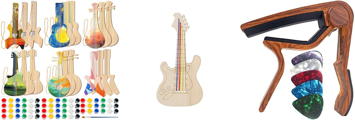 1. Syhood 18 Pcs DIY Wood Guitar for Kids (6 Difference Designs) with 18 Set of Pigments (6 Colors)