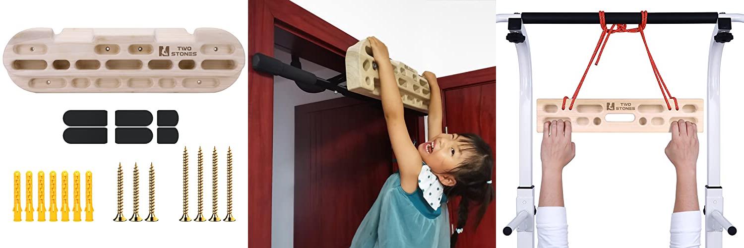 This hangboard is a good way to train for climbing at home. Just double-check your door frame size before buying.