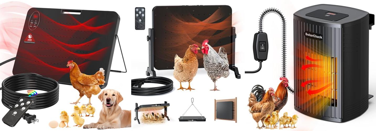 • Small Coops: Simple radiant heaters or small ceramic heaters work well.