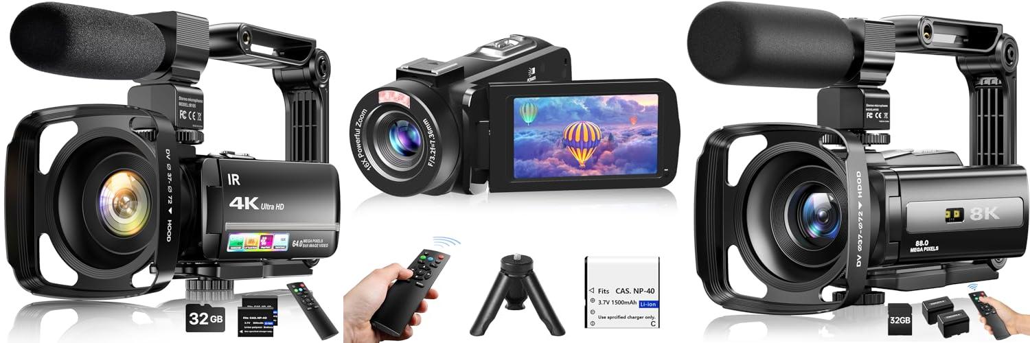 This 8K camcorder is a feature-rich option for aspiring YouTubers and content creators. It offers impressive video and photo quality along with practical accessories to enhance your shooting experience.