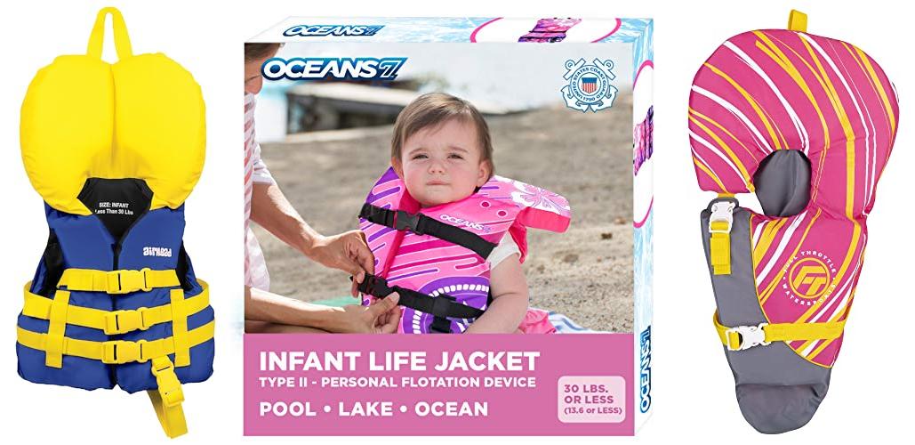 A: Infant life jackets are designed to provide enough buoyancy to keep a baby’s head above water. They generally offer more flotation than adult life jackets.
