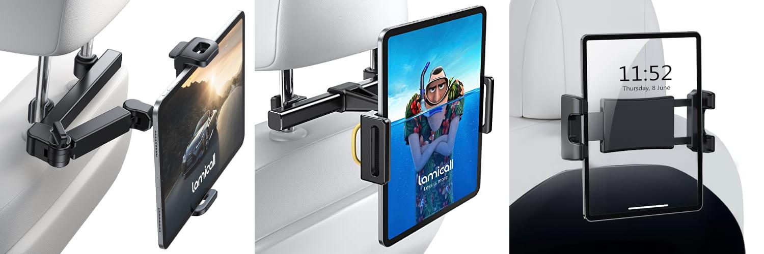 1. Lamicall Car Headrest Tablet Holder – [3 in 1 Extension Arm] Adjustable Tablet Car Mount for Back Seat