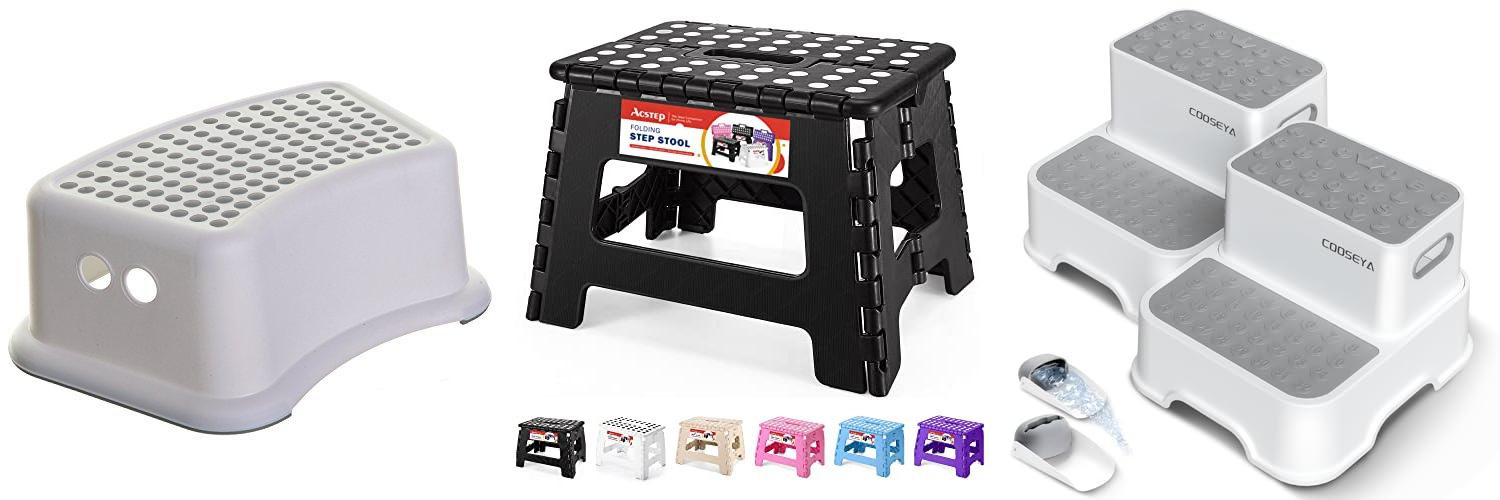 A: One-step stools are good for very young children or for reaching low items. Two-step stools are more versatile for reaching sinks, counters, and shelves.