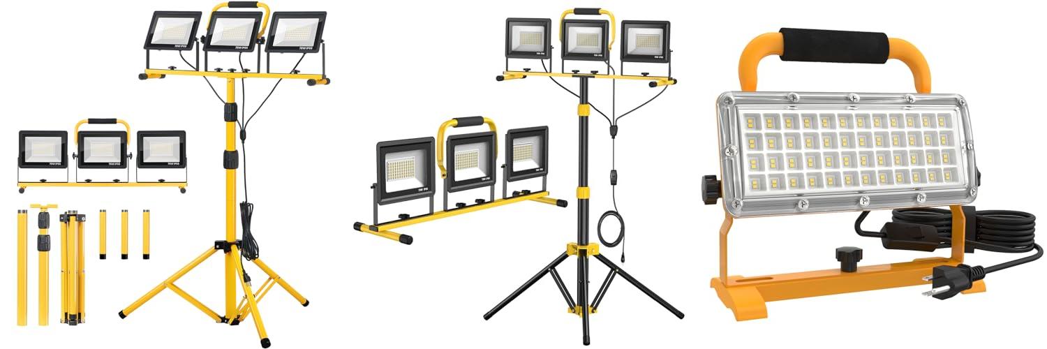 1. Zetunlo 21000Lumen LED Work Lights with Stand – 3 Head Portable Work Light with 16FT Cord – IP66 Waterproof Tripod Worklights for Outdoor Indoor Job Site Workshop Garage Construction Site Lighting