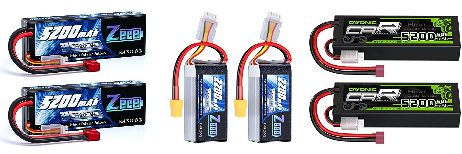 1. Zeee 7.4V Lipo Battery 2S 50C 5200mAh Lipos Hard Case with T Connector for RC Car Trucks 1/8 1/10 RC Vehicles(2 Packs)