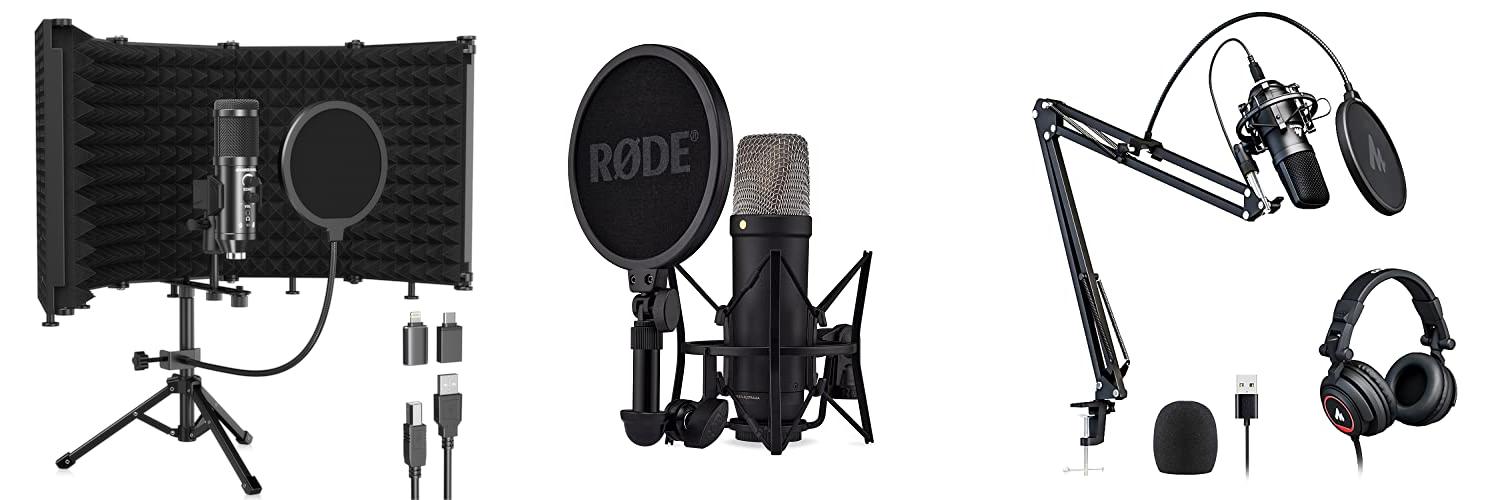 1. Studio Recording Microphone Isolation Shield with Pop Filter and Metal Tripod Stand