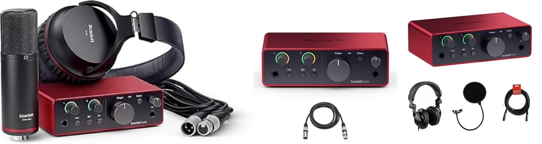 - It’s like having a mini studio! You get a condenser microphone, headphones, and the Scarlett Solo interface.