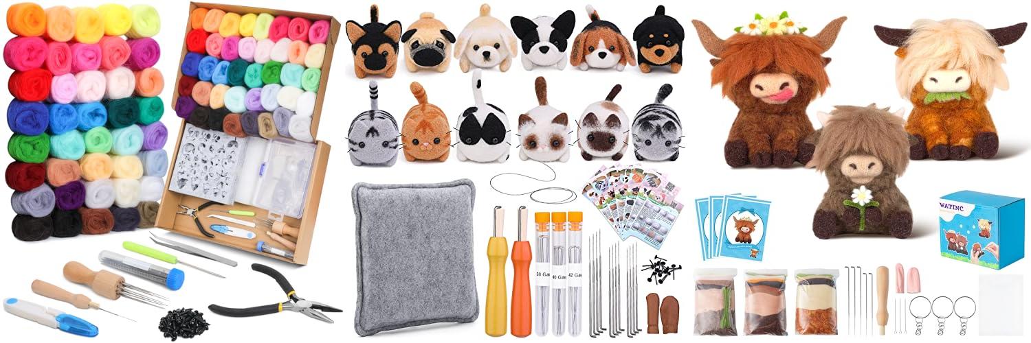 3. WATINC Needle Felting Kit – 3 Set Unique Different Cute Doll Wool Felt Needle Tools Foam Pad Instruction