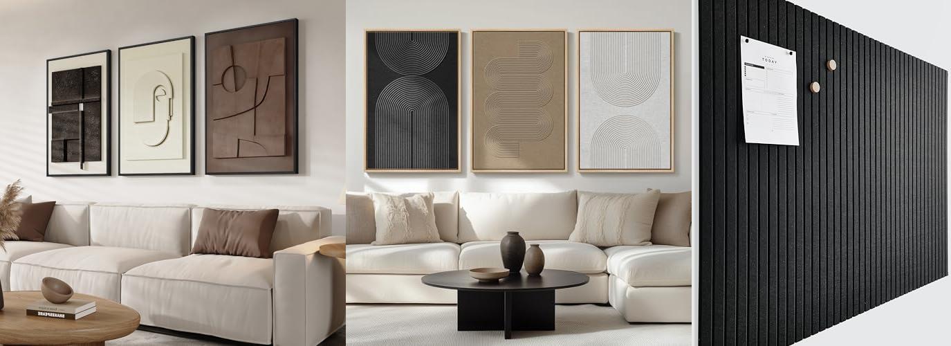 This set of three large framed abstract canvas prints brings a touch of modern, minimalist style to any room. The neutral black, white, and brown color palette, combined with simple geometric shapes, creates a sophisticated and artistic look. Measuring 24×36 inches each, these pieces offer a significant visual impact, making them ideal for transforming your living room, hallway, or office into a chic space.