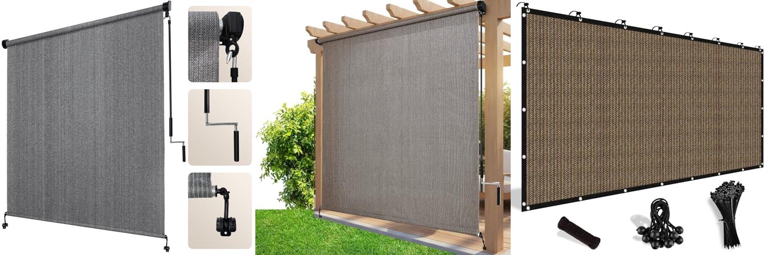 - These shades look good and work well on porches, patios, balconies, and pergolas. They fit in with different outdoor styles.