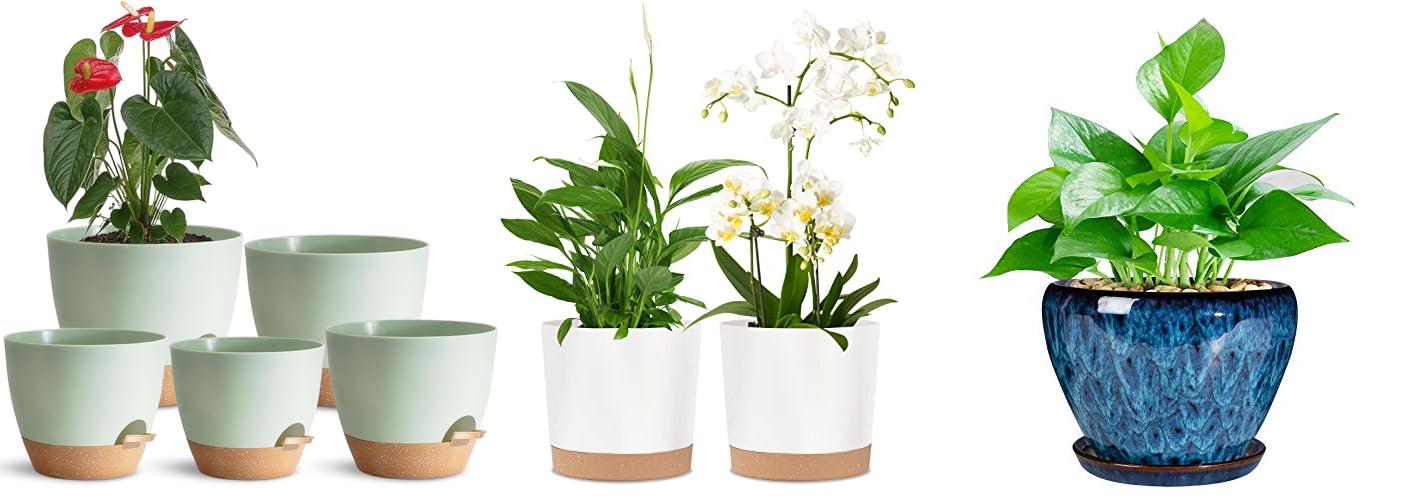 1. Indoor Plant Pots With Drainage Holes and Saucers Planting Pots for All HousePlants Green Plastic Flower Pots with Drainage Hole Self Watering Plant Pot Gift Idea For Home Decor Succulent Pots