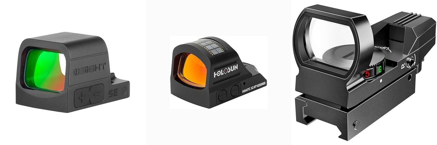 - Reticle Type: Most sights have a simple red dot. Some have a circle around the dot. A small dot is good for long shots. A circle with a dot helps you aim quickly up close.