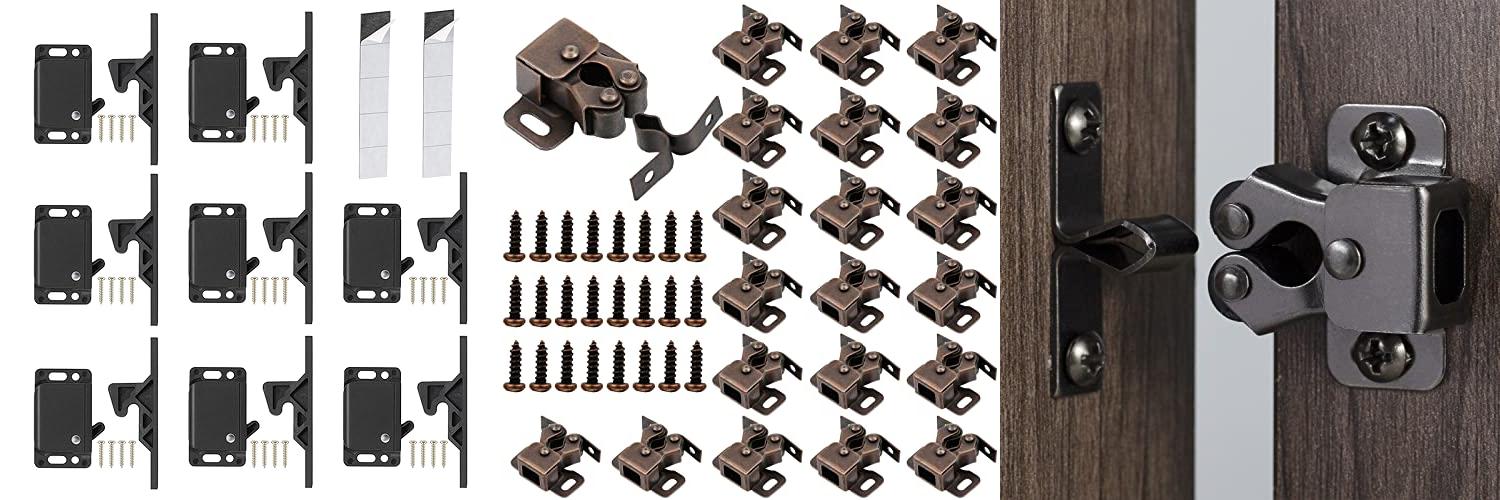 3. Keenkee 4 PCS Cabinet Latch Double Roller Catch Hardware for Cupboard Closet Kitchen Cabinet Door Latches and Catches