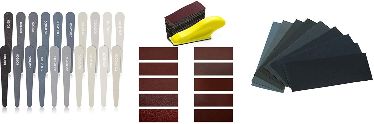 - You get sandpaper with many different grit levels.
