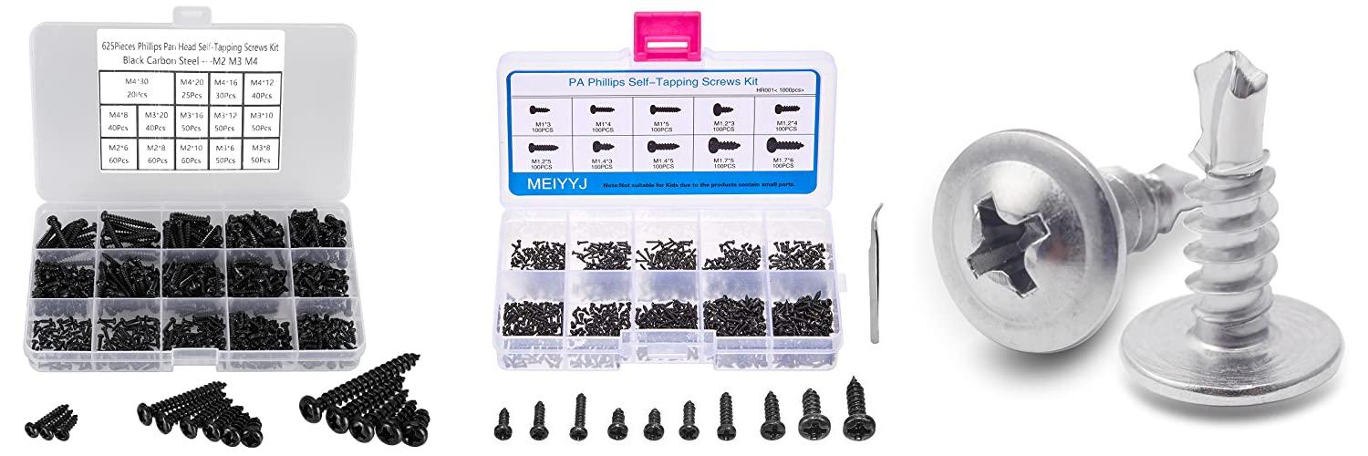 2. MEIYYJ 10 Kinds Small Multi-Purpose M1 M1.2 M1.4 M1.7 Phillips Head Micro Screws Self-Tapping Electronic Screws Assortment Kit Pack of 1000