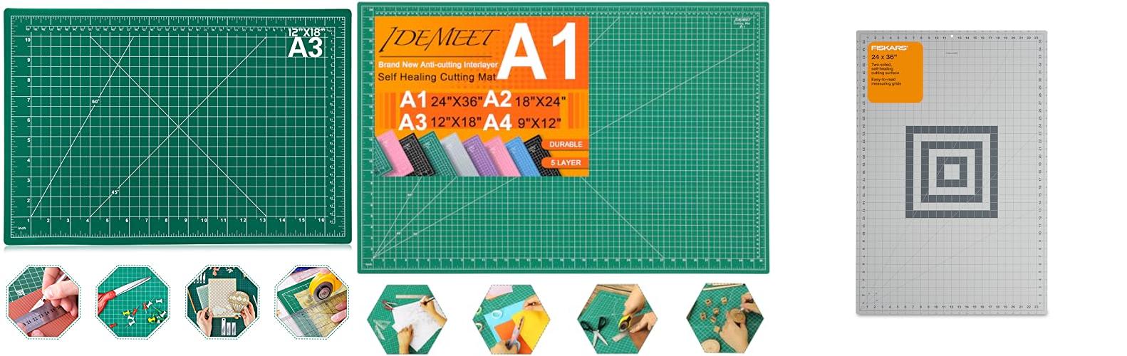 • Size: You need a mat big enough for your projects. Common sizes are 12×18 inches, 18×24 inches, and 24×36 inches. Bigger is better if you have a lot of space.