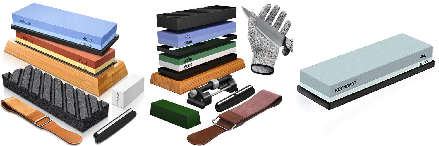 1. Intelitopia Complete Knife Sharpening Stone Set – Dual Grit Whetstone 400/1000 3000/8000 Knife Sharpener with Leather Strop