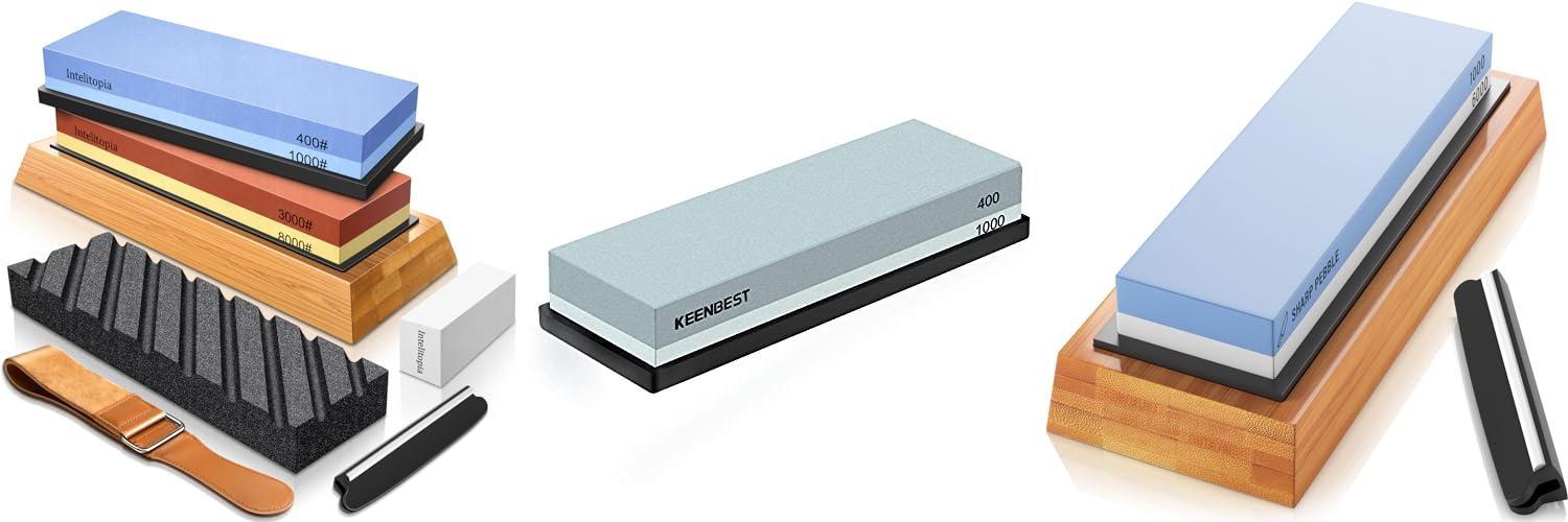 1. Intelitopia Complete Knife Sharpening Stone Set – Dual Grit Whetstone 400/1000 3000/8000 Knife Sharpener with Leather Strop