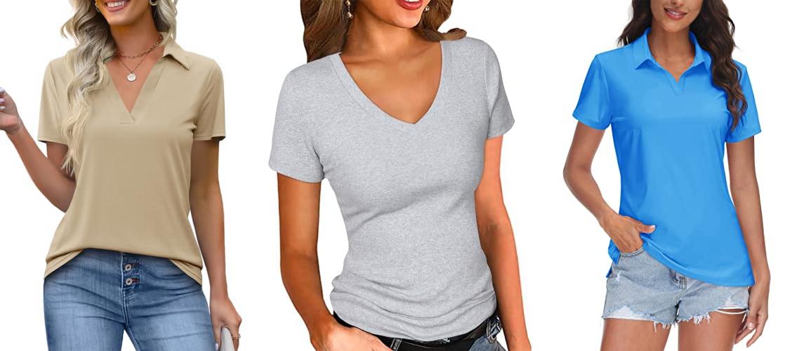 3. TACVASEN Women Golf Shirts Sun Protection Polo Vneck T-Shirt Short Sleeve Tops Quick Dry Shirt Lightweight