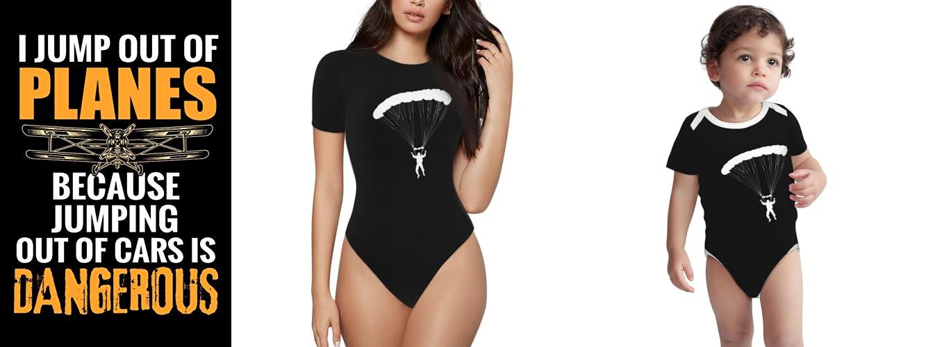 The DUWHEBAS Skydiving Silhouette Bodysuit is a versatile and stylish piece designed for comfort and fashion. Made from a soft, stretchy blend of 95% Rayon and 5% Spandex, this bodysuit offers a smooth, opaque fit that feels great against your skin. Its classic crewneck design and short sleeves make it a timeless addition to any wardrobe, perfect for both casual outings and more dressed-up occasions.