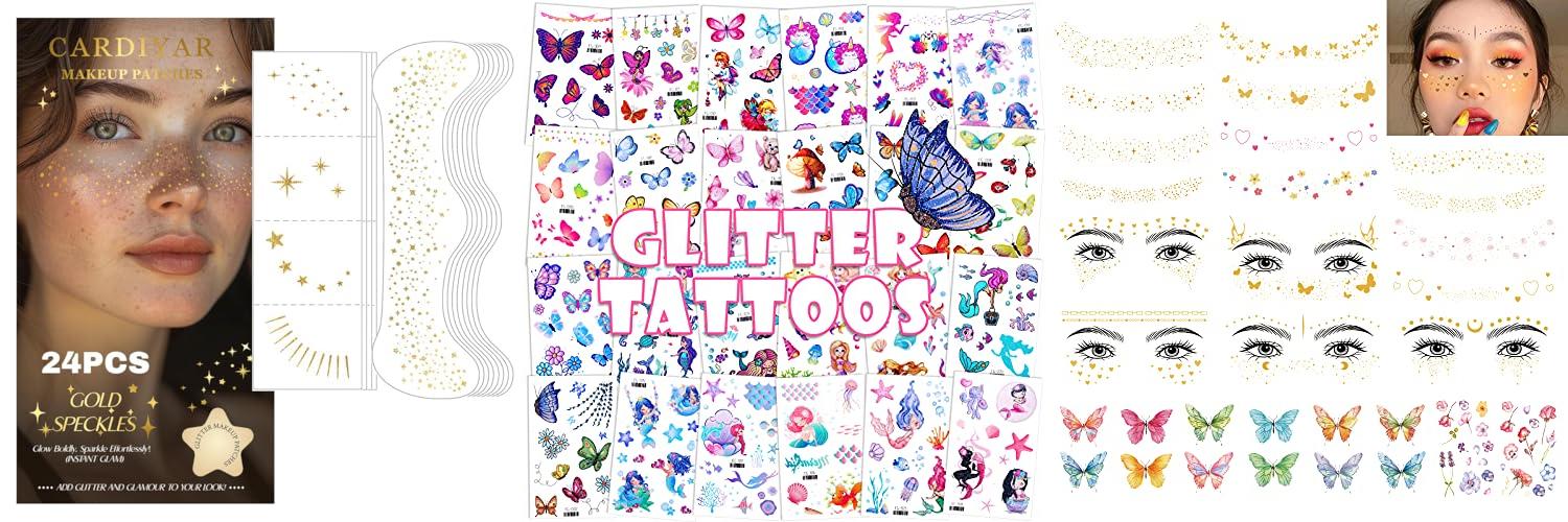 Glitter tattoos use a few key things. Knowing these helps you understand what you’re buying: