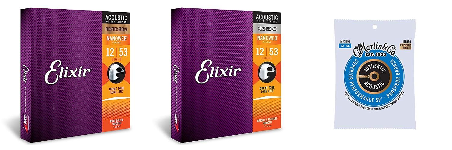 - 80/20 Bronze: These strings are made with 80% copper and 20% zinc. They sound bright at first, but the sound changes over time.