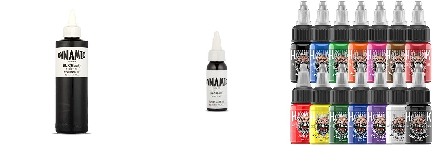 The Dynamic Color Co Black Ink 8oz Bottle is a professional-grade tattoo ink. It is made in the USA and known for its high pigment content. This ink is perfect for artists who want bold and long-lasting tattoos. Dynamic Color inks come in a clear bottle with a special coating to prevent fakes. They are also vegan and never tested on animals. This black ink is great for outlining, shading, and detail work.