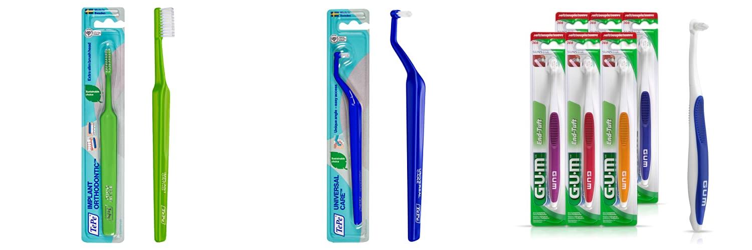 Some toothbrushes have angled heads. This helps you reach the back teeth. Angled heads can also clean around the implants better.